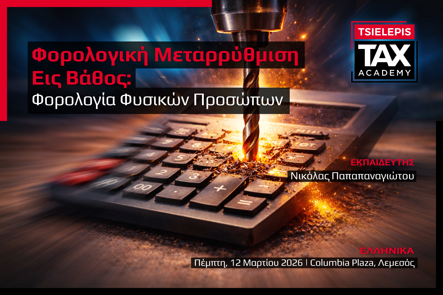 ΦΟΡΟΛΟΓΙΚΗ ΜΕΤΑΡΡΥΘΜΙΣΗ ΕΙΣ ΒΑΘΟΣ: ΦΟΡΟΛΟΓΙΑ ΦΥΣΙΚΩΝ ΠΡΟΣΩΠΩΝ Η Tsielepis Tax Academy συνεχίζει το Ακαδημαϊκό της Πρόγραμμα για το 2026 με ένα σεμινάριο …